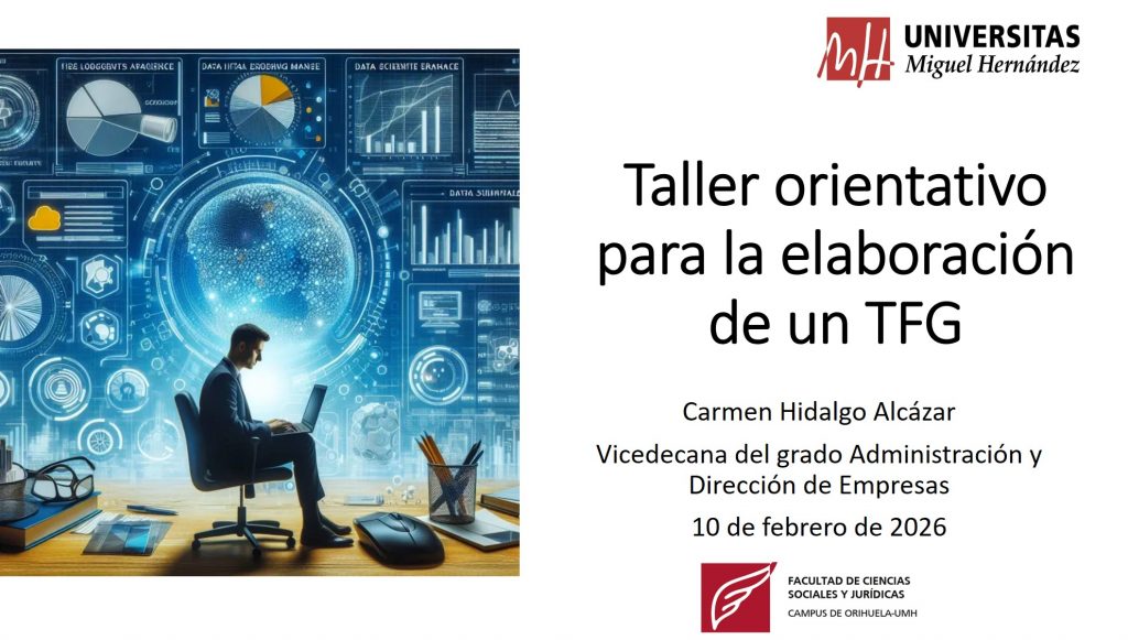 - Imparte: Profesora Carmen Hidalgo, Vicedecana del grado en Administración y Dirección de Empresas de la Facultad de Ciencias Sociales y Jurídicas de Orihuela.
